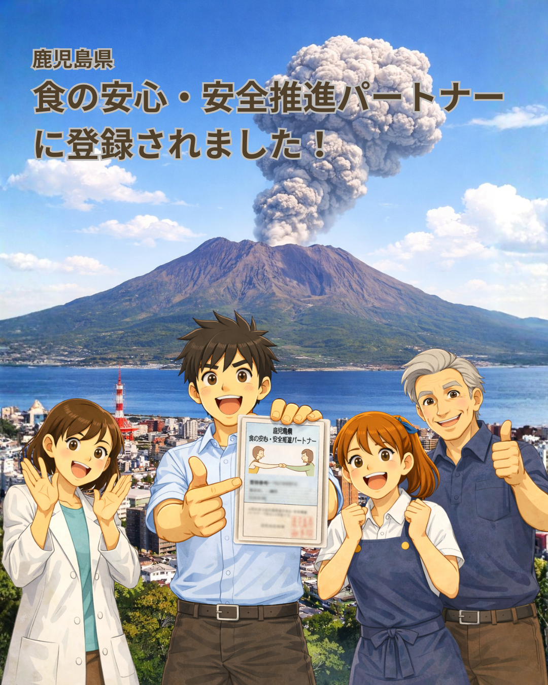 このたび、鹿児島県 食の安心・安全推進パートナーに登録され、登録証を交付いただきました。